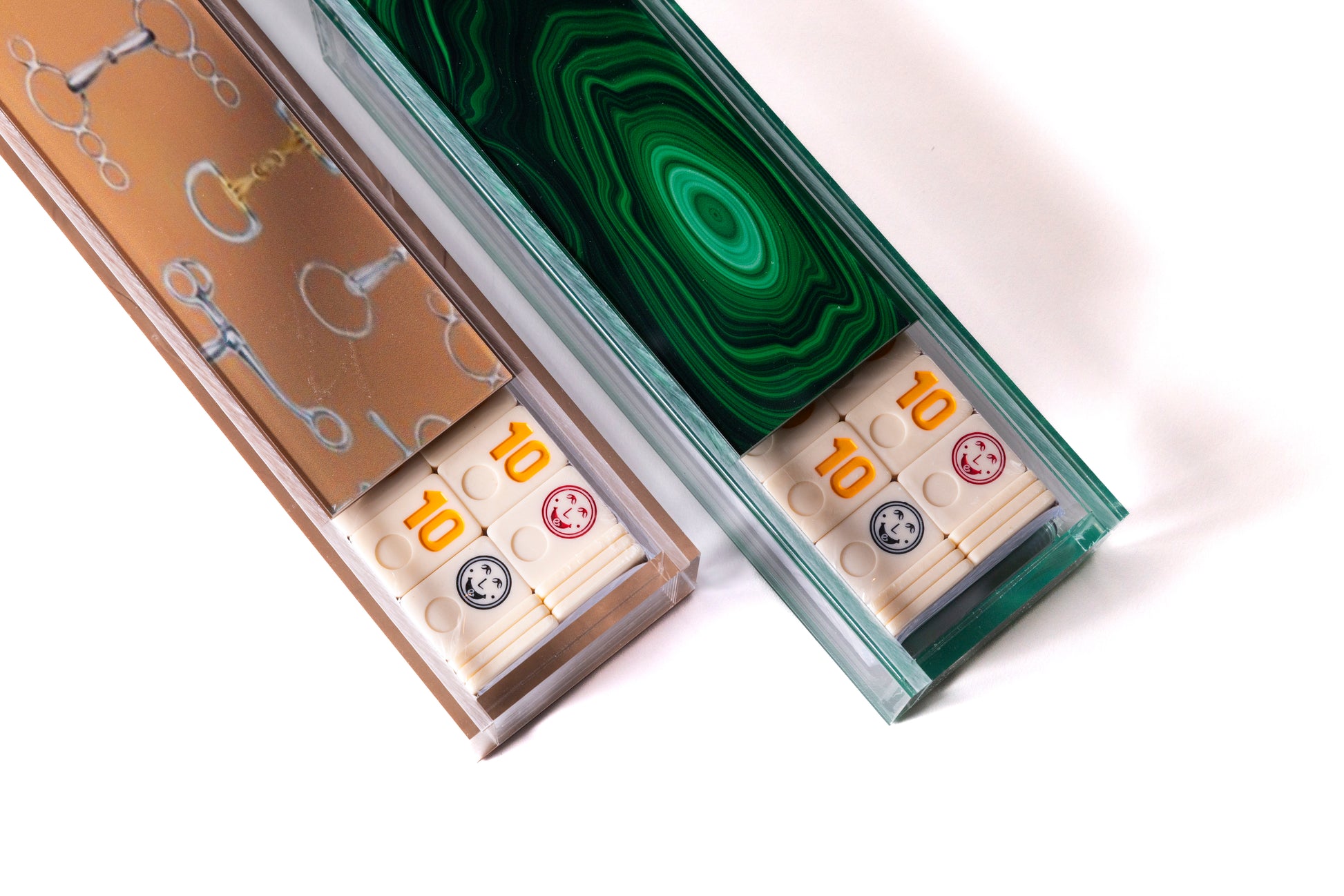 Gorgeous Rummikub set comes with four player racks and a set of tiles. Each set will be the perfect gift for a bride and groom, birthday or hostess. Enjoy this fun and exciting game anywhere. Available immediately: Marble pink, Pink Wave, Amalfi print. Most custom colors will ship within 2 weeks.