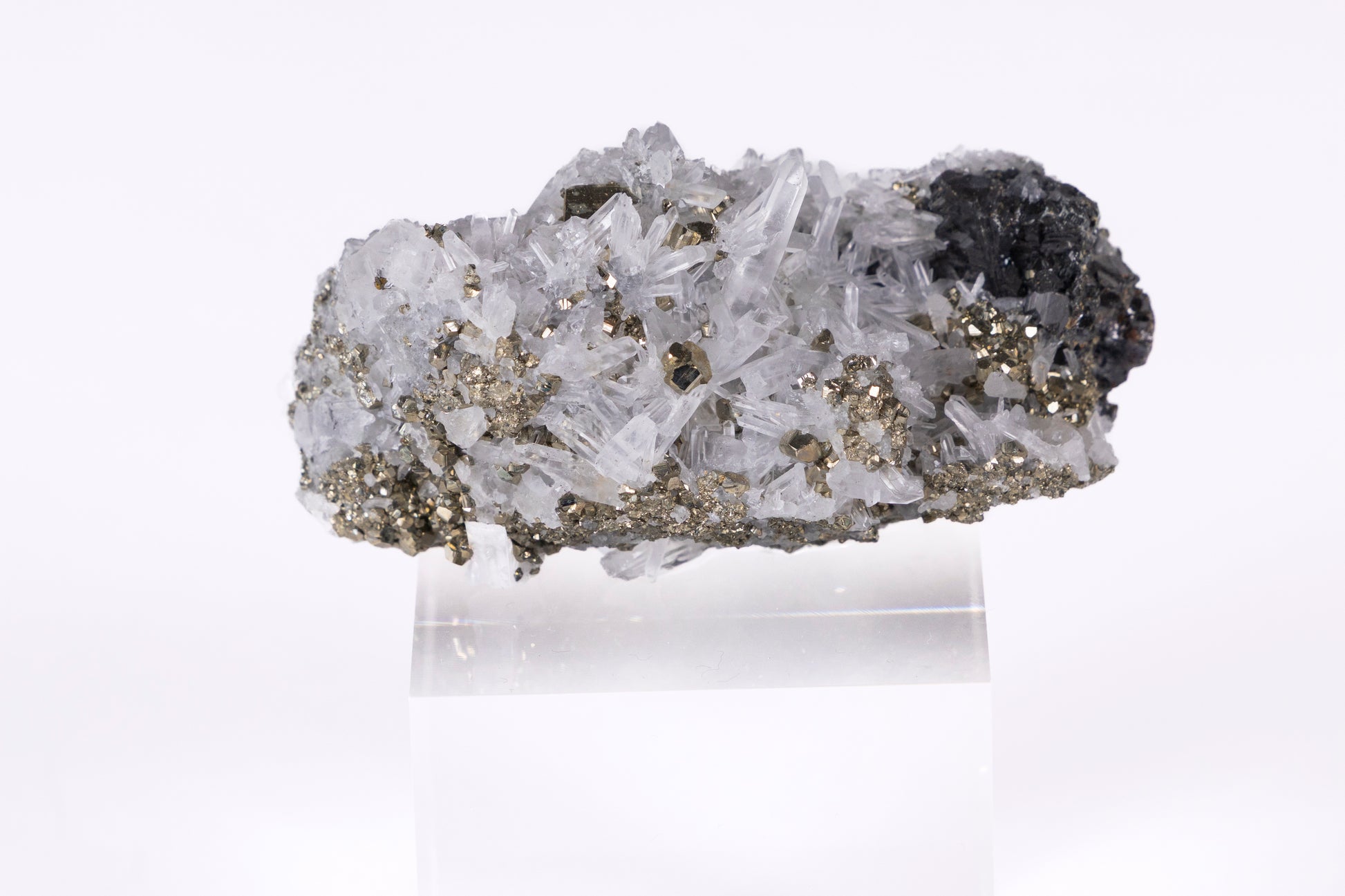 This handsome geode is set atop a weighty, solid 2 x 2 acrylic base, creating a quiet statement whether perched atop a table or set on a bookshelf. This stone is natural and yours will slightly vary in color, dimension and specific stone nuances. This is a mined mineral with natural negative spaces and unique surface markings.